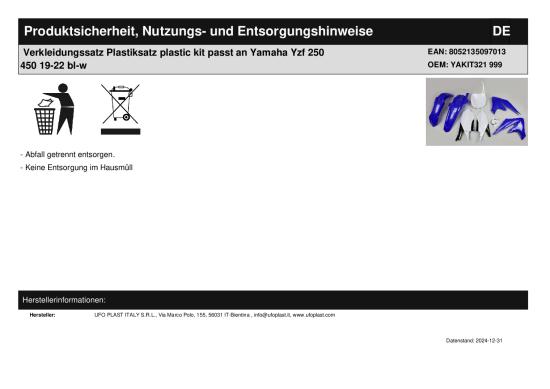| Titel: | Verkleidungssatz Plastiksatz plastic kit passt an Yamaha Yzf 250 19-23 450 sw |