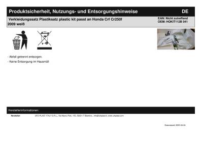 | Titel: | Verkleidungssatz Plastiksatz plastic kit passt an Honda Crf Cr250f 08-09weiß |