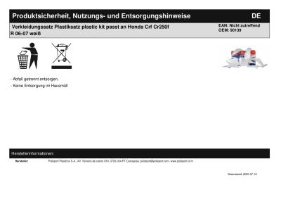 | Titel: | Verkleidungssatz Plastiksatz plastic kit passt an Honda Crf Cr250f R 06-07 weiß |