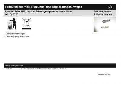 | Titel: | Polradabzieher M27x1 Abzieher Schwungrad passt an Yamaha Sr 250 500 Xt 250 |