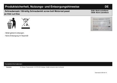 | Titel: | Schraubensatz 158-teilig Schraubenkit screw bolt Motorrad passt an Ktm Lc4 Exc |