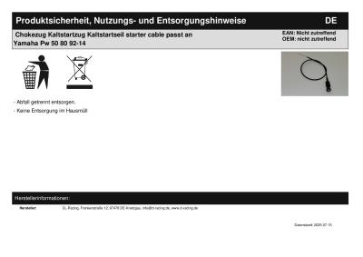 | Titel: | Chokezug Kaltstartzug Kaltstartseil starter cable passt an Yamaha Pw 50 80 92-14 |
