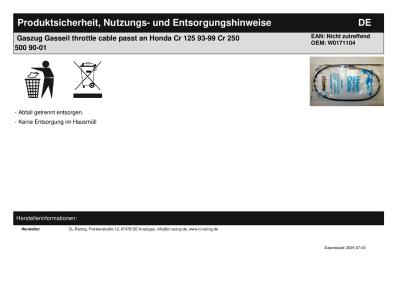 Titel: | Gaszug Gasseil throttle cable passt an Honda Cr 125 93-99 Cr 250 500 90-01 |