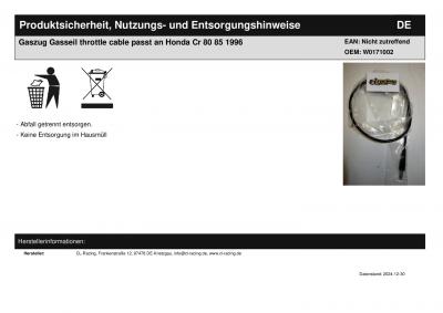 Gaszug Gasseil throttle cable passt an Honda Cr 80 85 1996