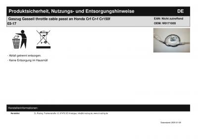 Titel: | Gaszug Gasseil throttle cable passt an Honda Crf Cr-f Cr150f 03-17 |