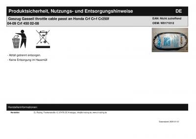Titel: | Gaszug Gasseil throttle cable passt an Honda Crf Cr-f Cr250f 04-09 Crf 450 02-08 |