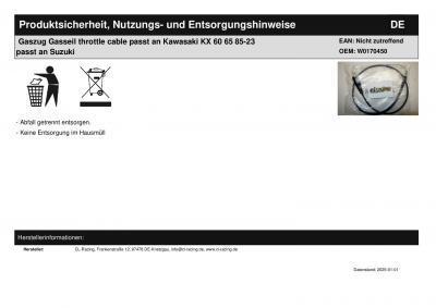 Titel: | Gaszug Gasseil throttle cable passt an Kawasaki KX 60 65 85-23 passt an Suzuki |
