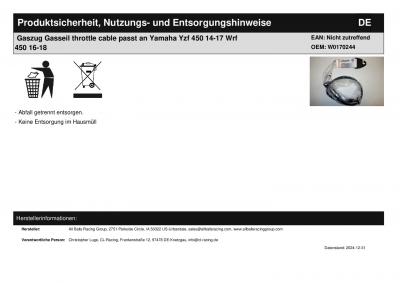 Titel: | Gaszug Gasseil throttle cable passt an Yamaha Yzf 450 14-17 Wrf 450 16-18 |