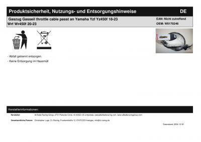 Titel: | Gaszug Gasseil throttle cable passt an Yamaha Yzf Yz450f 18-23 Wrf Wr450f 20-23 |