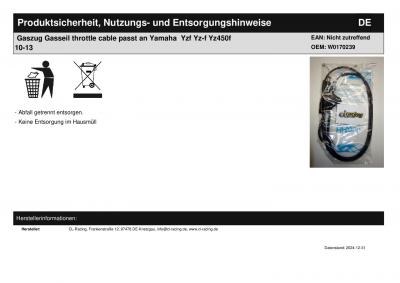 Titel: | Gaszug Gasseil throttle cable passt an Yamaha Yzf Yz-f Yz450f 10-13 |