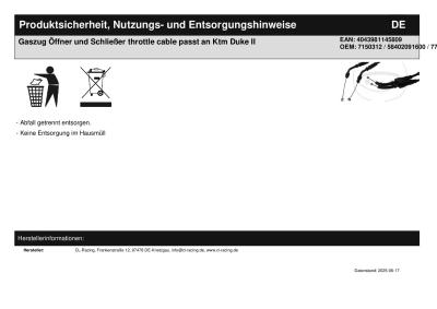 | Titel: | Gaszug Öffner und Schließer throttle cable passt an Ktm Lc4 640 Duke II |