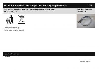 Titel: | Gaszugset Gasseil Kabel throttle cable passt an Suzuki Rmz Rm-Z 450 13-17 |