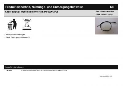 Titel: | Kabel Zug Seil Welle cable Motorrad 2KF9200-2F05 |