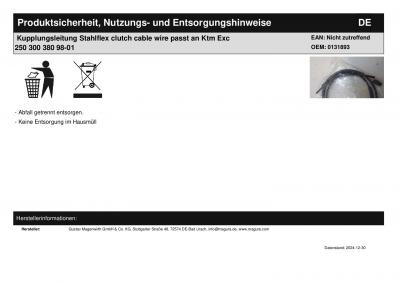 Titel: | Kupplungsleitung Stahlflex clutch cable wire passt an Ktm Exc 250 300 380 98-01 |