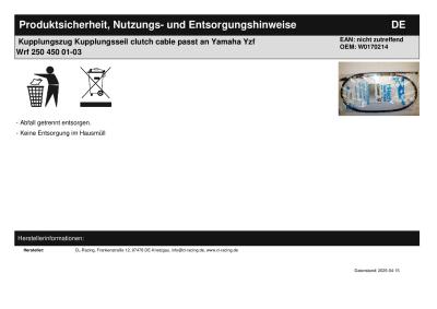 | Titel: | Kupplungszug Kupplungsseil clutch cable passt an Yamaha Yzf Wrf 250 450 01-03 |