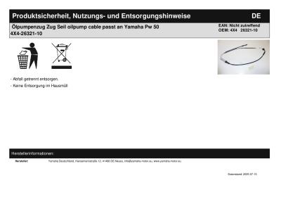 Titel: | Ölpumpenzug Zug Seil oilpump cable passt an Yamaha Pw 50 4X4-26321-10 |