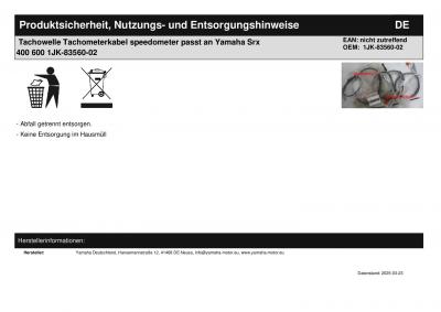 | Titel: | Tachowelle Tachometerkabel speedometer passt an Yamaha Srx 400 600 1JK-83560-02 |