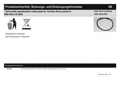| Titel: | Tachowelle speedometer cable passt an Yamaha Aerox passt an Mbk Nitro 50 2002 |