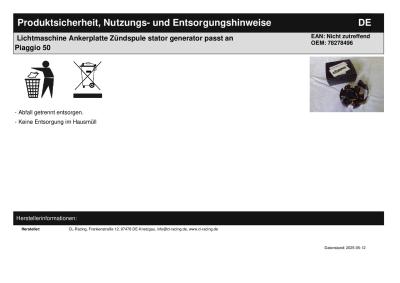 | Titel: | Lichtmaschine Ankerplatte Zündspule stator generator passt an Piaggio 50 |