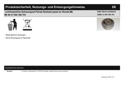 Lichtmaschine Schwungrad Polrad flywheel passt an Honda Mb Mt 50 31100-166-701