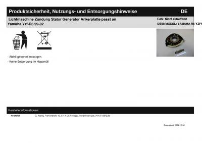 | Titel: | Lichtmaschine Zündung Stator Generator Ankerplatte passt an Yamaha Yzf-R6 99-02 |