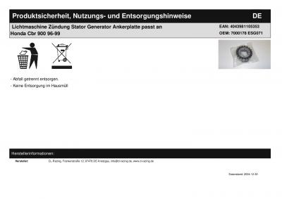 | Titel: | Lichtmaschine Zündung Stator Generator Ankerplatte passt an Honda Cbr 900 96-99 |