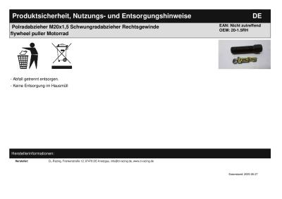 | Titel: | Polradabzieher M20x1,5 Schwungradabzieher Rechtsgewinde flywheel puller Motorrad |