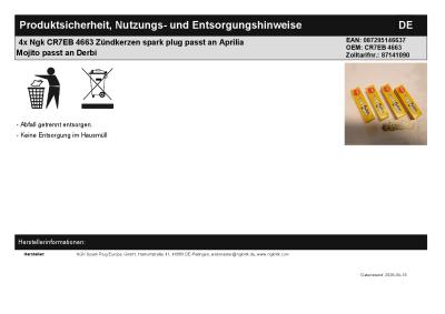 | Titel: | 4x Ngk CR7EB 4663 Zündkerzen spark plug passt an Aprilia Mojito passt an Derbi |