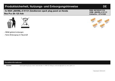 | Titel: | 5x NGK LMAR8L-9 91131 Zündkerzen spark plug passt an Honda Nss Pcx Sh 125 Adv |