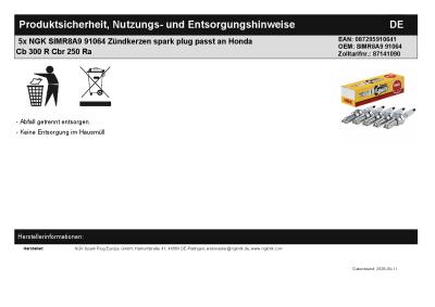 | Titel: | 5x NGK SIMR8A9 91064 Zündkerzen spark plug passt an Honda Cb 300 R Cbr 250 Ra |