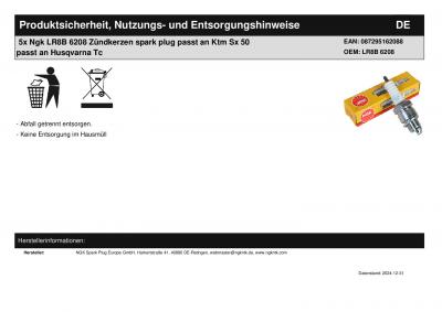 Titel: | 5x Ngk LR8B 6208 Zündkerze spark plug passt an Ktm Sx 50 65 09-23 Tc Mc 21-23 |