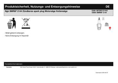 Titel: | Ngk BMR6F 2144 Zündkerze spark plug Motorsäge Kettensäge |