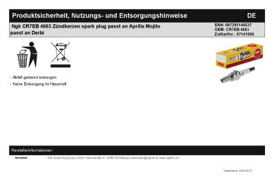 | Titel: | Ngk CR7EB 4663 Zündkerzen spark plug passt an Aprilia Mojito passt an Derbi |