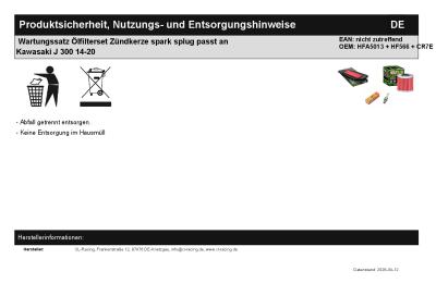 | Titel: | Wartungssatz Ölfilterset Zündkerze spark splug passt an Kawasaki J 300 14-20 |