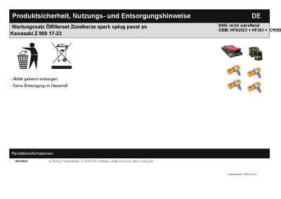 | Titel: | Wartungssatz Ölfilterset Zündkerze spark splug passt an Kawasaki Z 900 17-23 |