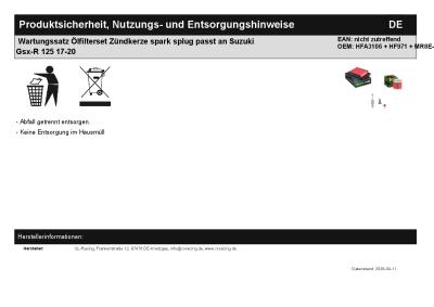 | Titel: | Wartungssatz Ölfilterset Zündkerze spark splug passt an Suzuki Gsx-R 125 17-20 |