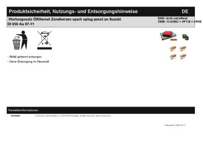 | Titel: | Wartungssatz Ölfilterset Zündkerzen spark splug passt an Suzuki Dl 650 Au 07-11 |