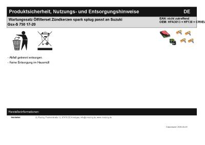 | Titel: | Wartungssatz Ölfilterset Zündkerzen spark splug passt an Suzuki Gsx-S 750 17-20 |