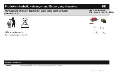 | Titel: | Wartungssatz Ölfilterset Zündkerzen spark splug passt an Suzuki Sv 650 16-24 A |