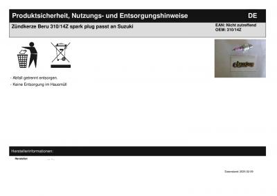 Titel: | Zündkerze Beru 310/14Z spark plug passt an Suzuki |