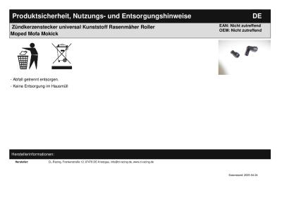 Titel: | Zündkerzenstecker universal Kunststoff Rasenmäher Roller Moped Mofa Mokick |