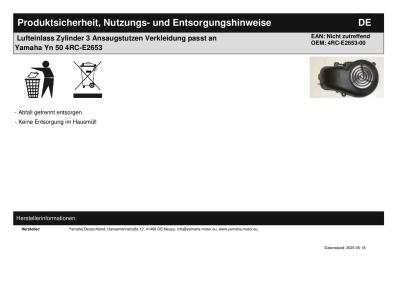 Titel: | Lufteinlass Zylinder 3 Ansaugstutzen Verkleidung passt an Yamaha Yn 50 4RC-E2653 |