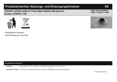 Titel: | Zylinder cylinder passt an Triton Baja Outback 300 passt an Access 12100-E11-100 |