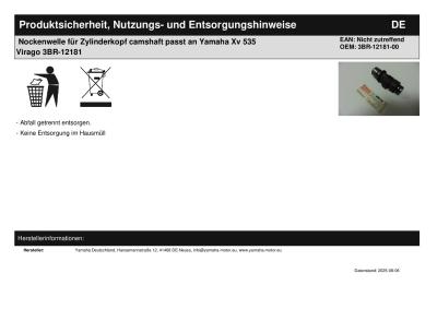 | Titel: | Nockenwelle für Zylinderkopf camshaft passt an Yamaha Xv 535 Virago 3BR-12181 |